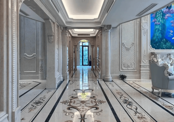 法式城堡重现雍容华贵,再续法式皇家风范。从整体到局部,精雕细琢,镶花刻金都给人一丝不苟的印象。一方面保留了石材材质、色彩本质的特定风格,让人感受到传统的历史痕迹与浑厚的文化底蕴,同时又摒弃了过于复杂的肌理和装饰,勾勒出奢华的气息。