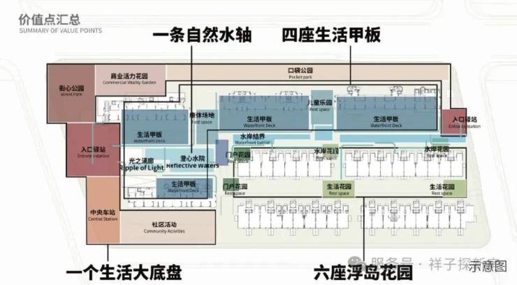 该区域含街道芭蕾(开放式街区、宠物友好口袋花园、喷泉剧)、循水归岸(自然水系界独立城市岛,六大景观节点)、林岛漫步(每栋高层周围4座艺术浮岛甲板),可享微风咖啡香、流水般自在生活及负氧离子疗愈。