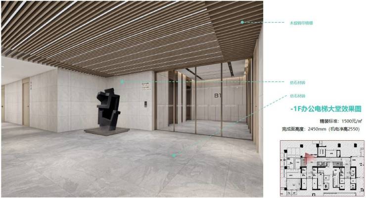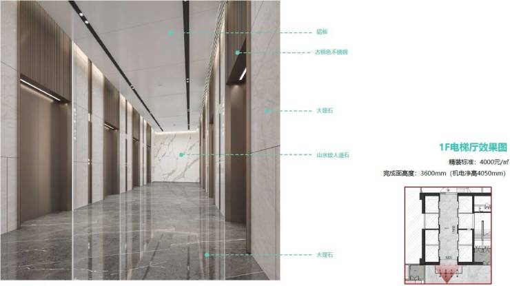 极致产品属性——核心区内甲级商务次地标,总高约150米,大堂9.5米挑高,层高达4.15米,整层面积约1140平-2000平,亦可半层或整层定制,满足各类企业所需。