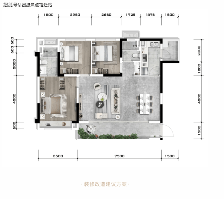 三江新区仅有的滨江组团106㎡做出横厅户型。