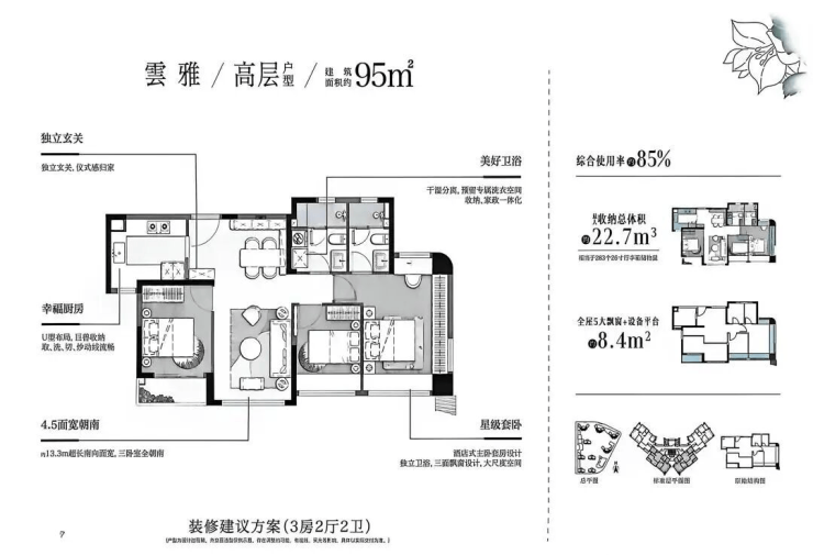 •95㎡高层为4.5开间朝南,空间感媲美传统109㎡户型