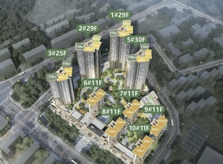 •总户数:536户,楼栋采用洋房+高层错落式布局,含5栋11层洋房和4栋25 - 29层高层;洋房为1梯2户层高3.15米设计,高层为2梯4户的户户类边套设计;楼栋最大楼间距约81米;规划车位数502个,车位配比1:0.9;