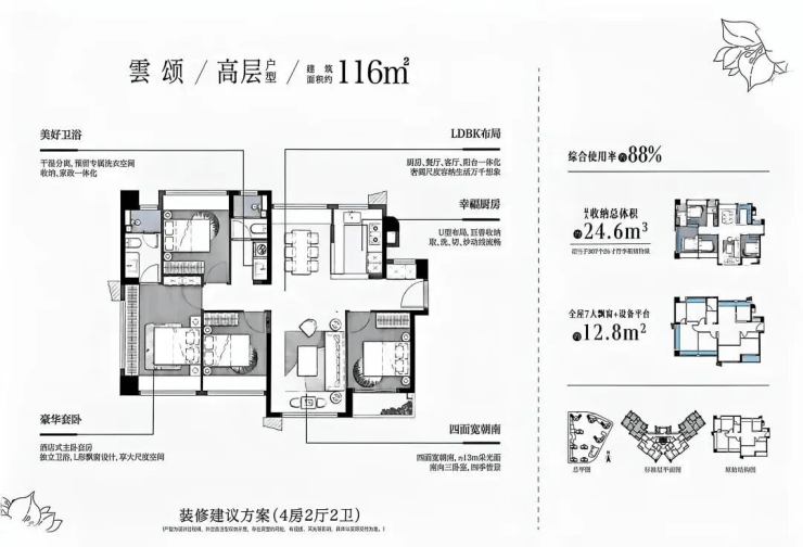•116㎡高层为四面宽朝南,部分房源可瞰海景