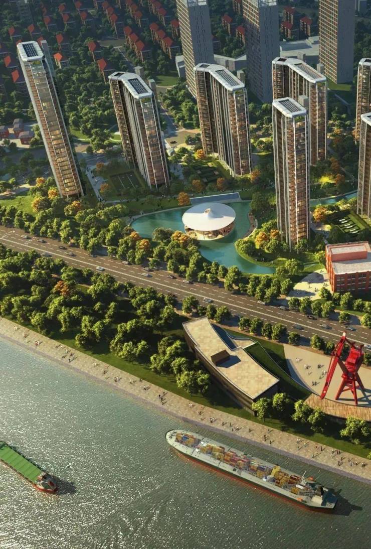 比如西侧沿江布置6栋8层住宅(其中靠世博大道5栋为保留建筑),东侧沿雪野路布置19~22层住宅,形成西低东高两道天际线,最大程度利用江景资源。