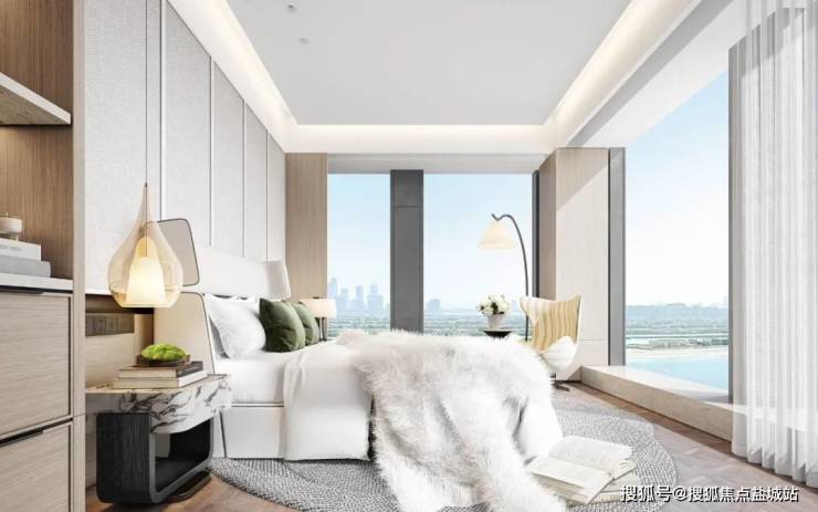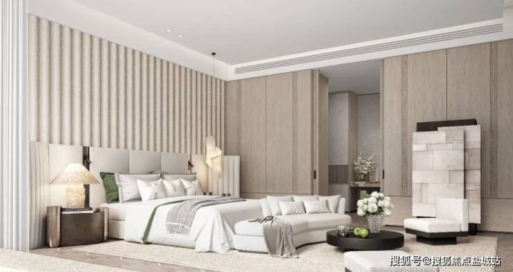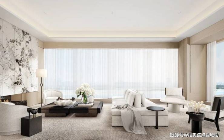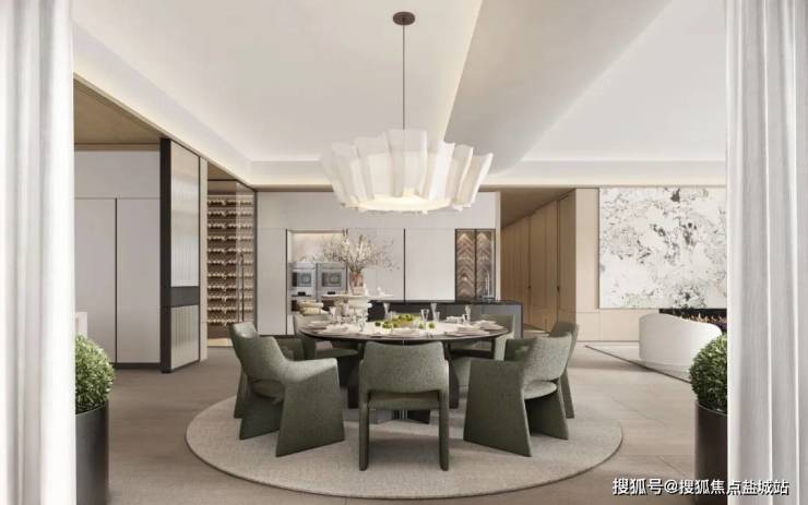 室内设计上,采用LDK一体化设计,带来极具阔正的空间尺度,并以大面米灰、暖灰为主基调,营造出高级优雅的氛围感,同时通过吊灯、艺术玻璃、酒柜等软装艺术作点缀,将艺术与生活融合,简奢中透出时尚前卫,营造出私密、温暖、现代化、国际化及独特的鼎级舒居体验。