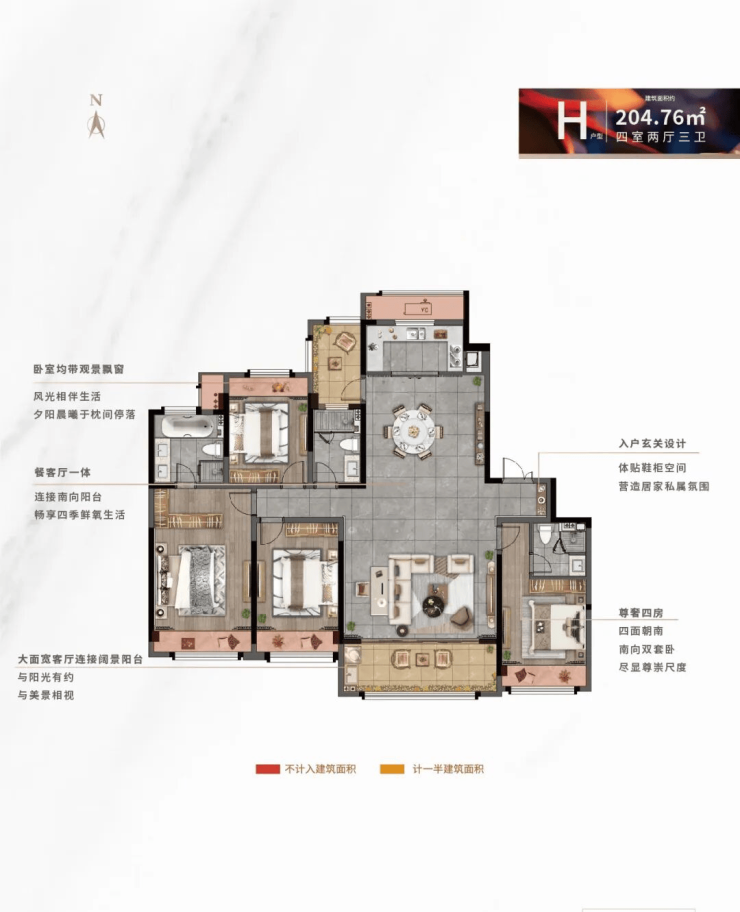 在常发珑玥,建面约205㎡宽境平层以其非凡尺度,重新定义当代世家生活。