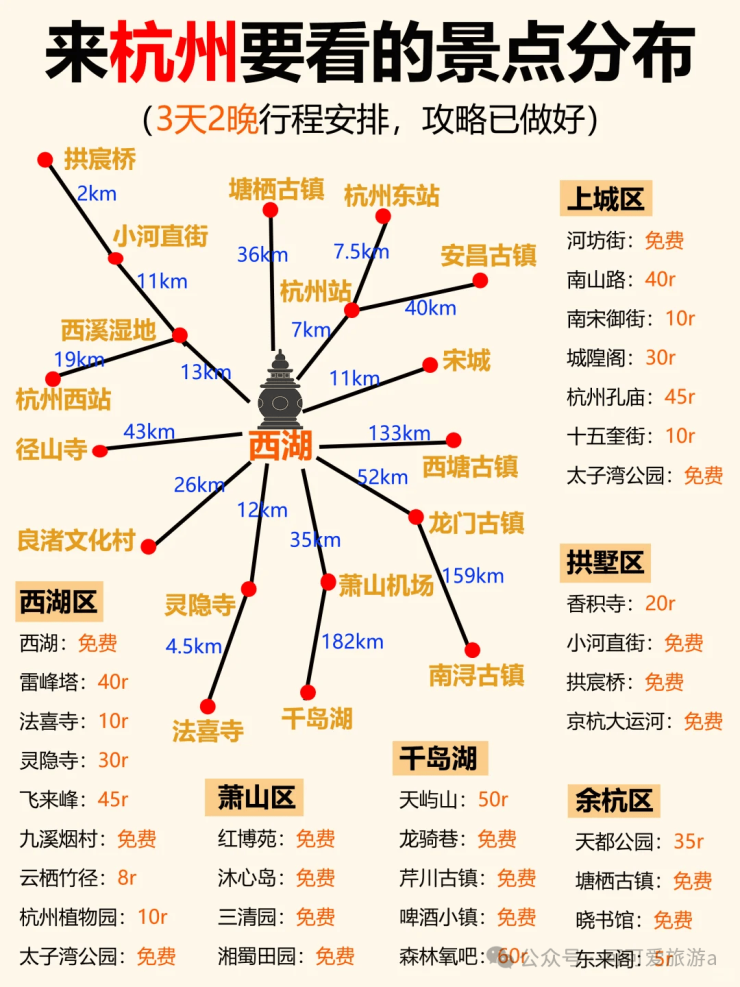市内交通:地铁覆盖主要景点,下载 “杭州地铁” APP 刷码乘车;公交超方便,很多景点门口都有公交站,“西湖内环线”“西湖外环线” 是环湖公交,5 块钱能绕西湖一圈~