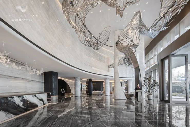 入口景观及裙房屋顶花园打造双花园,以“钱塘江”“西湖”为设计灵感,提炼出“浪潮”“茶田”“茶花”为主题的景观元素融入形成艺术张力与场地情怀的融合。打造出赏景畅谈式私家花园,惬意的休闲空间放松静懿的生活境界。