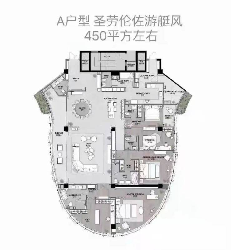 【户型面积】:约430、450㎡;