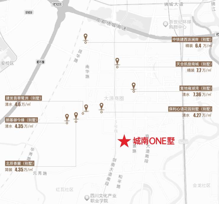 1、土地稀缺:2015-2023年,板块土地供给仅8块宗地,今年5月出拍土地,清水限价36000元/㎡,寸土寸金板块,清水限价刷新成都新高度。顶级资源配置,物业价值遥遥领先,大源板块二手别墅市价4万/㎡起。
