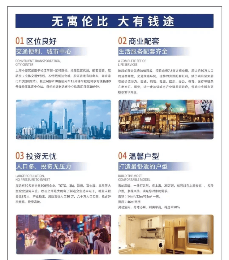 【位置】:上海松沪雅苑坐落于松江南部--紧邻新桥。地理位置优越,配套完善。可以说是得天独厚,位于松江国家重点高科技园区中心位置,周边有50多家世界500强企业,包括TOTO、3M、箭牌、富士康、三星等大型企业,还有上海最大的电子制造企业达丰电子。旁边的达丰电子最多的时候有8万多人,附近常住人口就有30 万,人气非常足。而且都是固定工作,长期运营的大型制造类企业,人气充足,产业稳定。