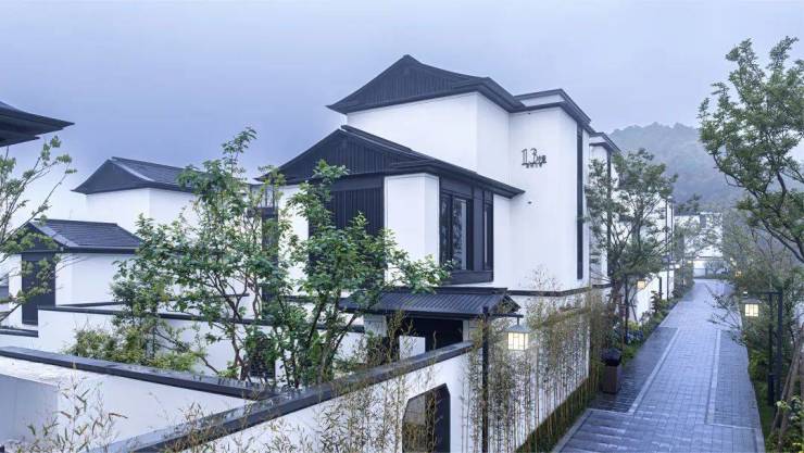 有别于传统中式的冷寂,仙女湖小镇的庭院产品呈现出更为经典的当代感。比如,中式大屋顶抽象为简约轻巧的形态韵味;院墙在保留山地民居情怀的前提下,以石材与玻璃等材质,顺应山势呈现出独特的时代气息;门窗在传统范式基础上,增大了开间尺度,尽可能将阳光与风景迎入室内。