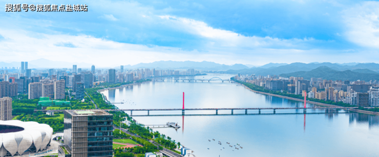另一侧,奥体场馆和国博中心镶在窗前;目光向西,钱塘江绵延10公里,六和塔、西湖群山影影绰绰……