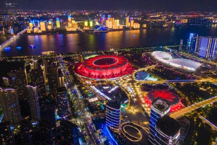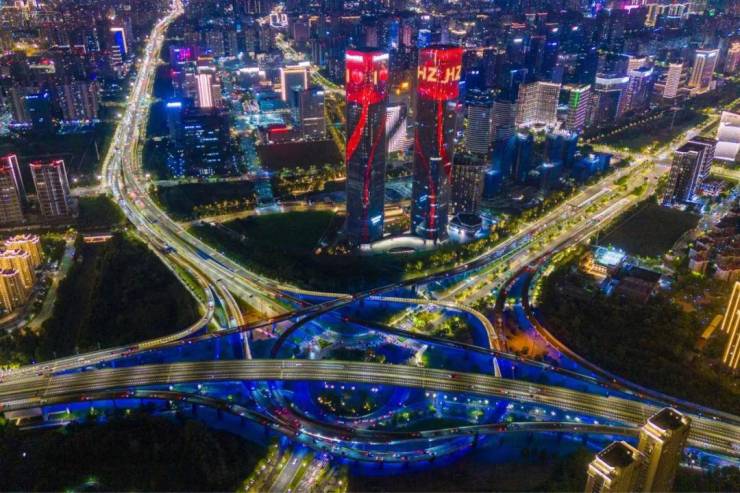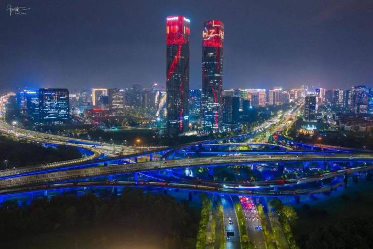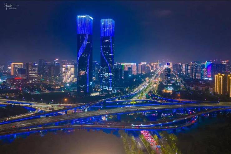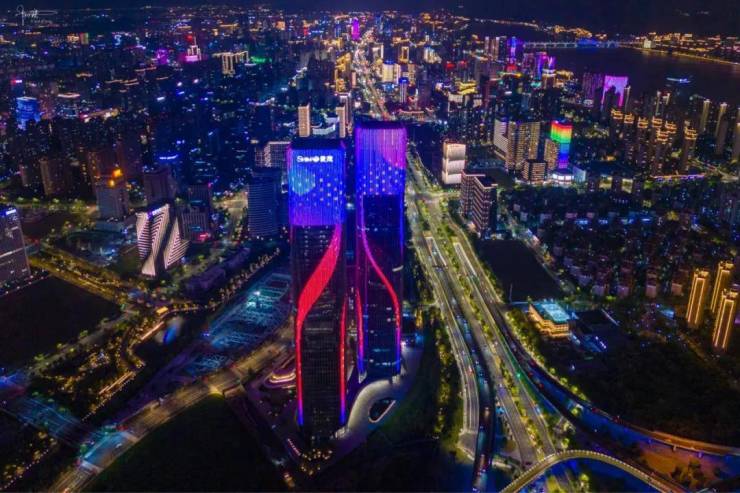 稍作了解,它的幕墙总面积有十多万平方米,外立面主要由标准板和飘带板,共计16363块单元组成。每当夜幕降临,双子塔就会用两条“绸带”的光影变幻,让建筑充满艺术美感,也向市民和游客展现着钱塘江潮汐的涌动与起落。
