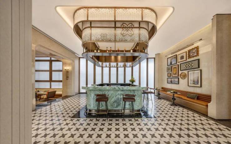 设置全域风雨连廊,园林景观独具匠心,将西湖十景融入园区,53米宽、10.85米高的中式大门搭配罗汉松与黄铜狮,尽显归家礼仪;中庭复刻“柳浪闻莺”“花港观鱼”,如西湖画卷;下沉庭院有百年古树,步移景异如“人在画中游”。