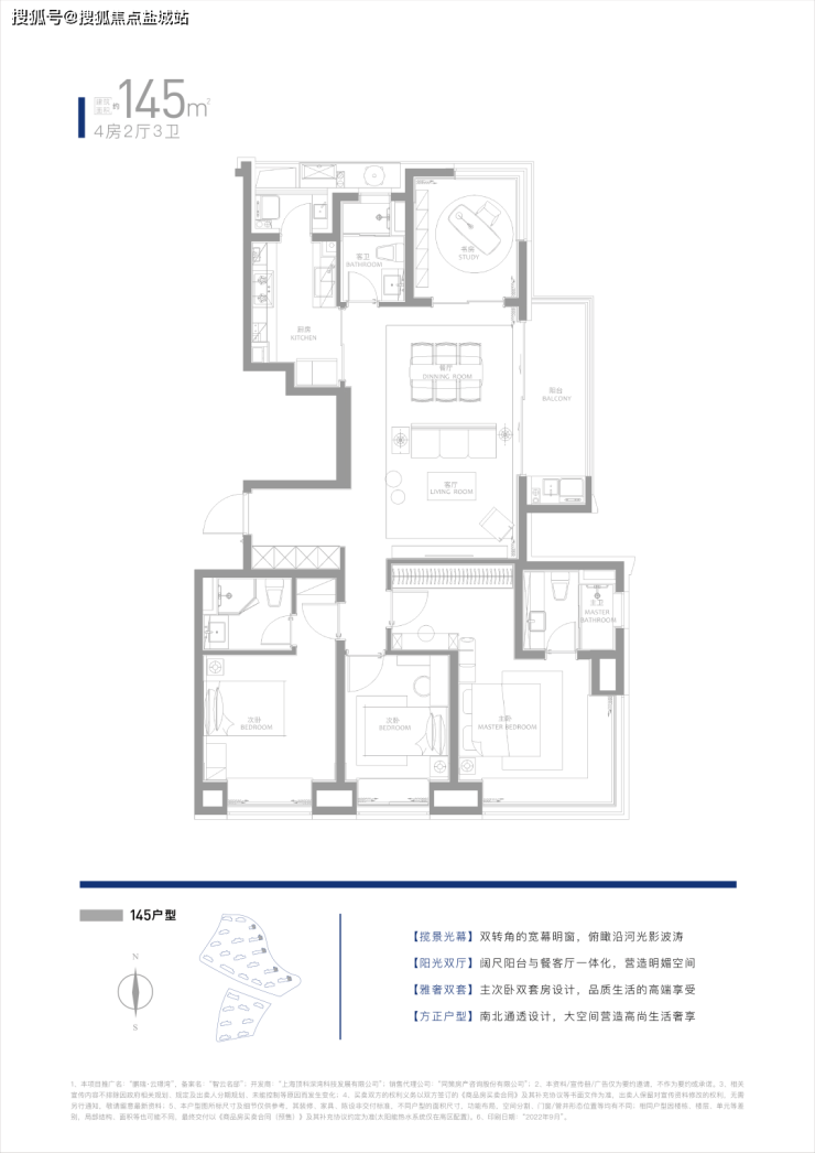 在产品打造上,项目融入现代成长户型理念,项目主打总价仅约370万起高性价比三房产品和稀缺双水岸景观舒适四房,建面约120-145㎡的智慧美宅。用心考量三开间朝南、客餐厅一体化、1.5卫设计等产品细节,一步到位满足家庭全周期生活进阶。