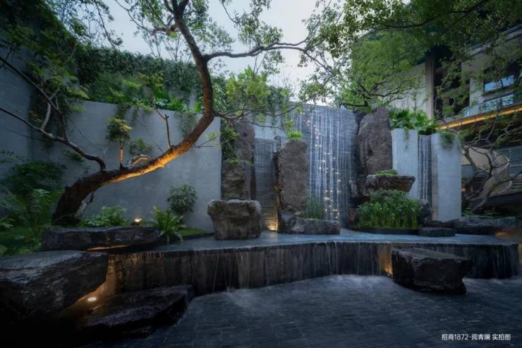 立体山水叠瀑,设计旋转楼梯与内部中庭相接,构建都市与自然共融的和谐之境