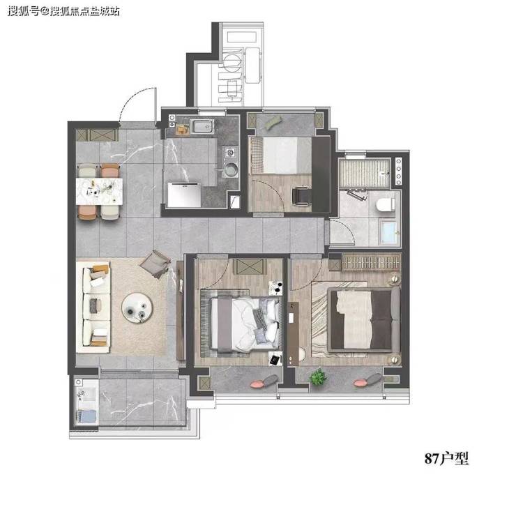 建面约87㎡3房2厅1卫
