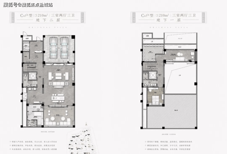 【建筑面积210方】庭院70-90方,地下室170-280方,总价750-850万。