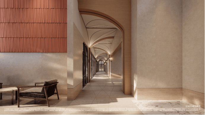 外滩瑞府的2号楼泛会所,正是华润置地深入洞察这份需求后,给出的精准回应。空间由汤臣一品、翠湖六期同款设计师渡边智昭先生操刀,实际呈现的质感不仅还原了设计师的蓝图,更带来超出预期的惊喜。整体空间中,艺术廊道深度融合外滩历史文脉,顶部石材切割出流畅的圆弧转角,与地面弧形线条相互呼应, 行走其间宛如置身艺术展馆,每一步都藏着底蕴,这种经典设计语言让空间越住越耐看,经得起时间考验。