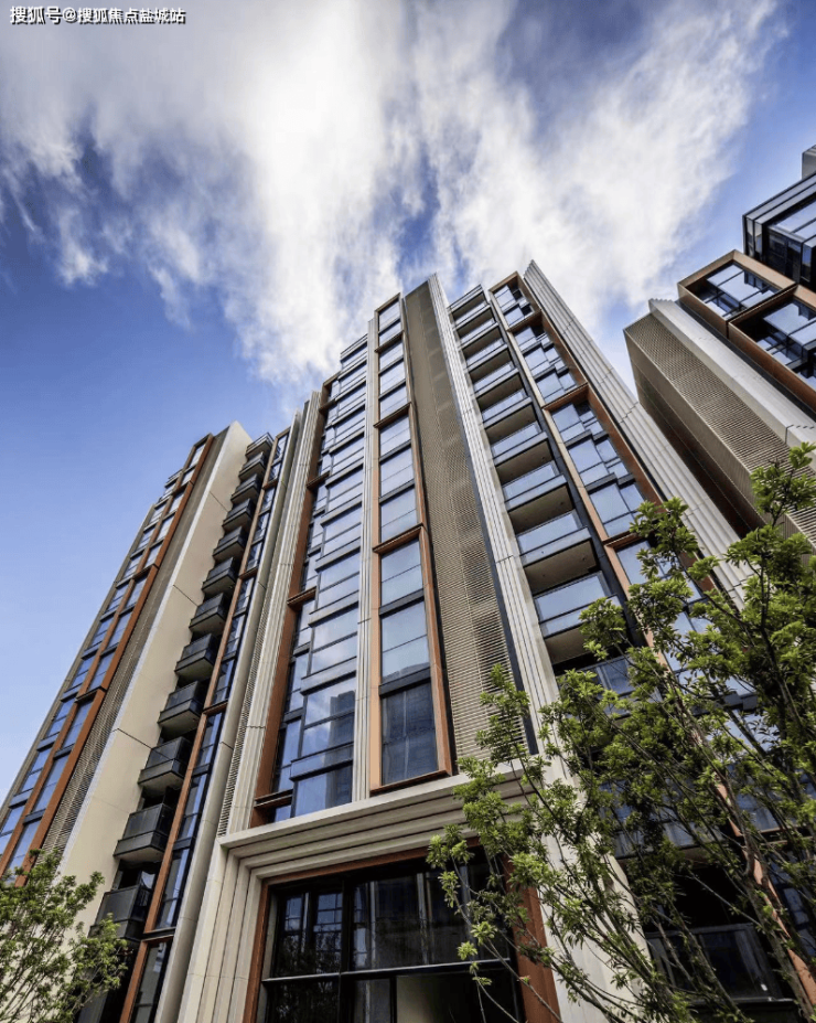 天安1号前期的住宅外立面选用铝板+石材,搭配大面积玻璃,颜值出众!