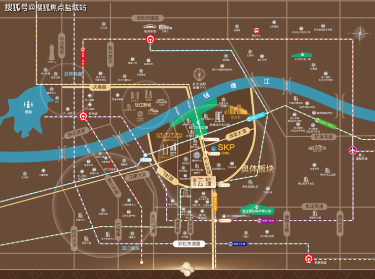 位于杭州奥体板块,与钱江新城合称“杭州CBD双核”,集合板块内优质配套资源,繁华触手可及。