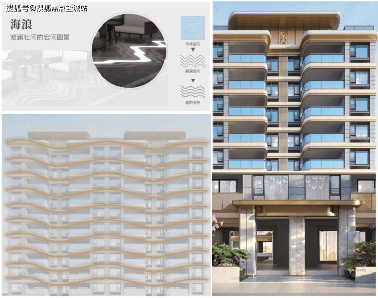 小高的立面造型灵感源自海浪的曲线,设计流畅而优雅,采用波浪形立面模拟海浪起伏,营造出动态的视觉效果。在灯光映衬下,建筑宛如海浪般生动。大面积的玻璃飘墙与透明栏杆设计,增强了小区的透明度和开放感,让自然光线充分涌入室内。