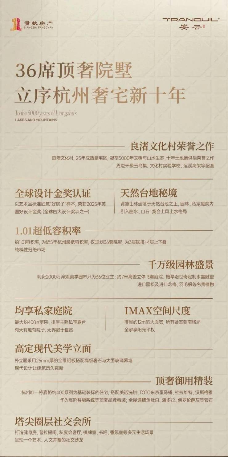 2025年量执房地产集团携安云玖院,以极致低密、极致用材的姿态打造极致私域生活,验证杭州豪宅下一个十年标准。
