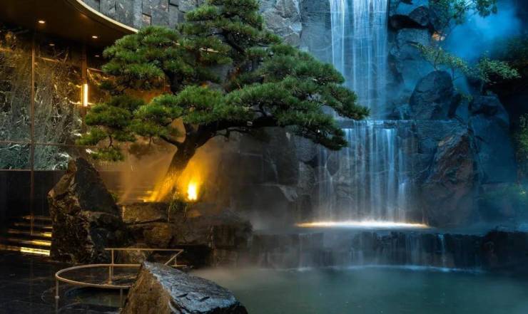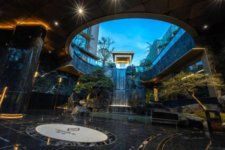全冠移植200万单棵的进口黑松及进口龙梅、羽毛枫、杜鹃球等臻稀植物,与飞瀑相生相融,诠释着自然与艺术的完美对话。
