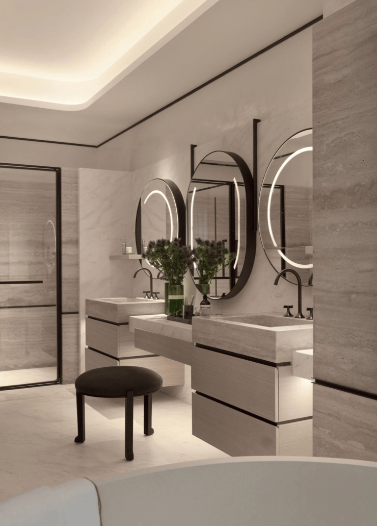 项目室内设计由打造过上海汤臣一品、杭州嘉里逸庐等顶豪的日本著名室内设计师渡边智昭、打造过深圳SIC大平层、北京万国府等顶豪的中国著名室内设计师于昭等大师团队打造。avalon collective扛旗的奢装,打造美学新篇,户户高定。