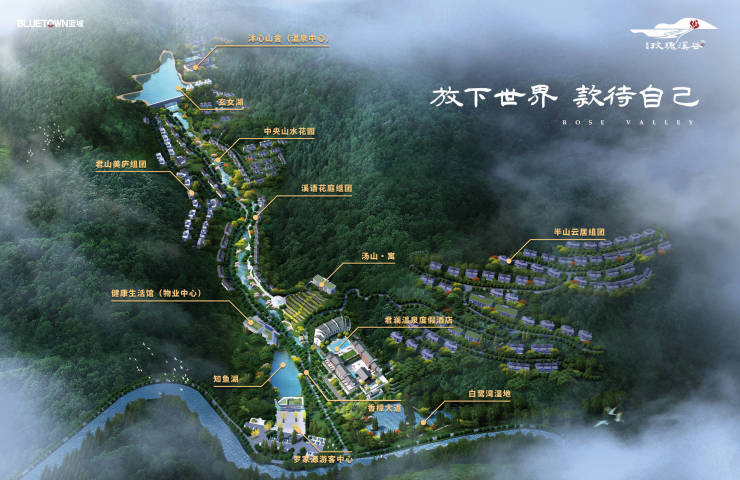 蓝城&玫瑰溪谷汲取徽派、苏派建筑精华,敬呈世家大族的归家礼序,匠心雕琢约135-280㎡地上二层/三层蓝城经典小院,地下温泉入户,直面溪谷最长轴线,可自住,实现诗和远方的情怀,可经营度假产品,实现营收回报。
