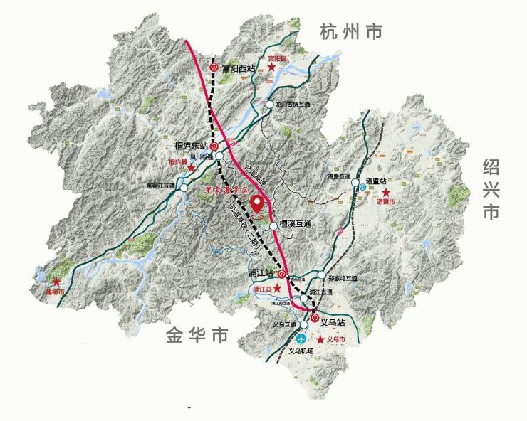 依托杭温高铁2期构筑四方通浦的交通路网,经由浦江站约15分钟可直达义乌,约30分钟直达杭州;项目约5分钟即可直达桐浦义高速口,约25分钟通达义乌,约50分钟直达杭州,是名副其实的近城合院。