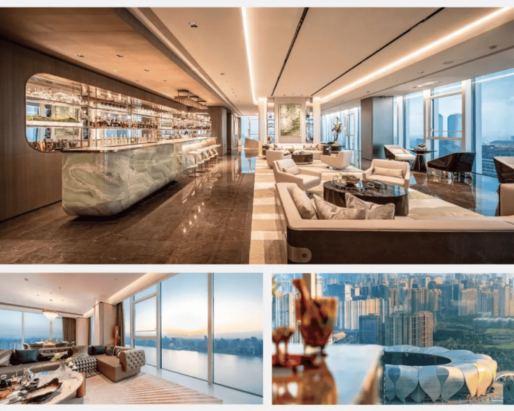 项目直线距离钱塘江约450M,以约90万方恢弘体量、约240米天际高度,满足世界峰层人物精神欲望的最高向往,成就扛鼎杭州江岸华宅的全球天际资产。