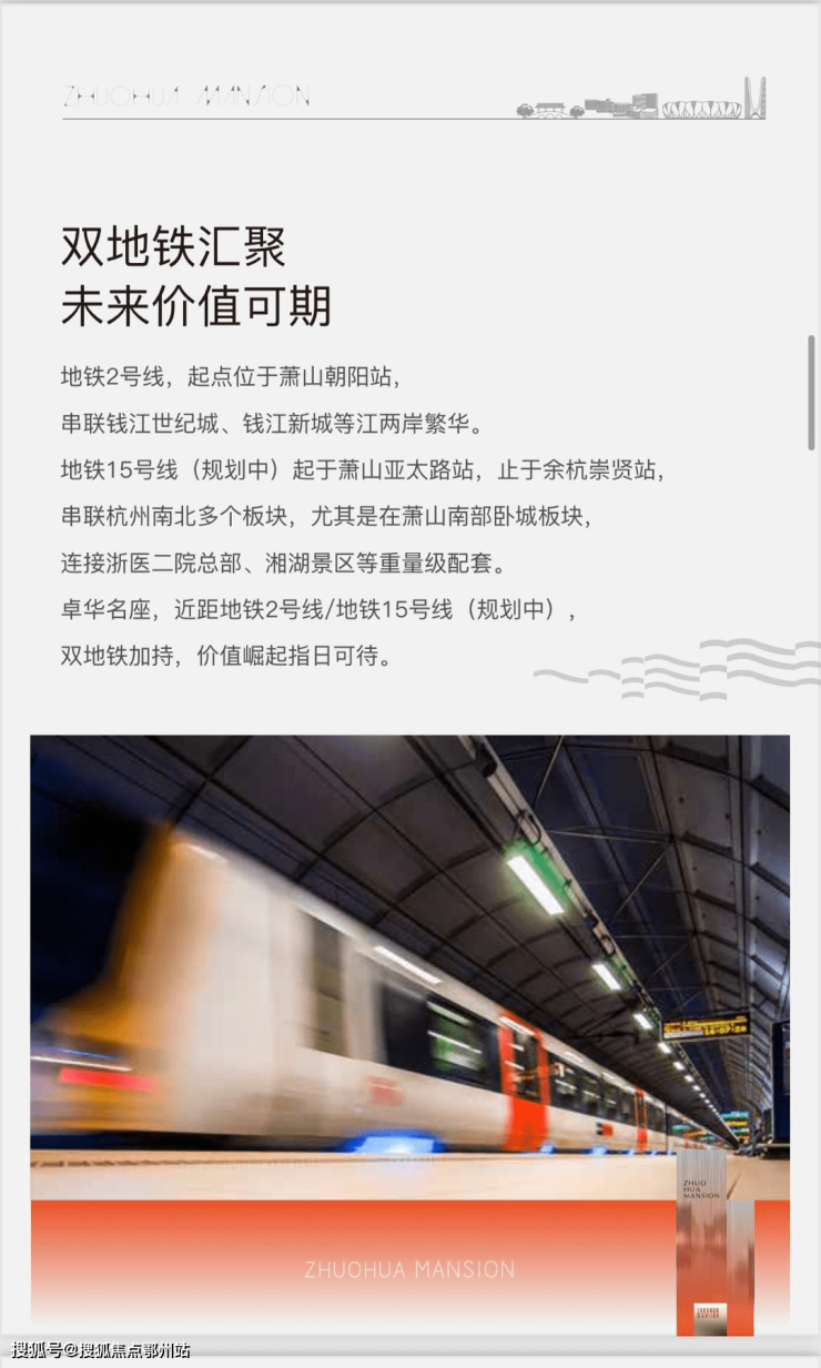 地铁15号线(规划中)起于萧山亚太路站,止于余杭崇贤站串联杭州南北多个板块,尤其是在萧山南部卧城板块