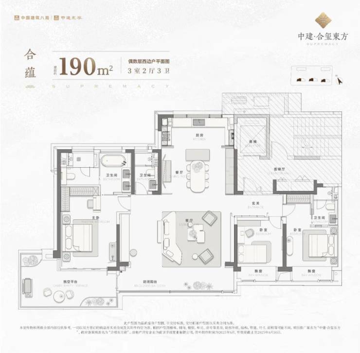 建面约190㎡户型提供三房、四房可选方案,让家成为业主意志的个性化表达