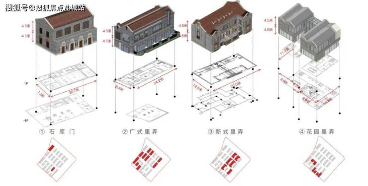 形态分布:广式里弄、花园里弄、新式里弄、石库门风格四种