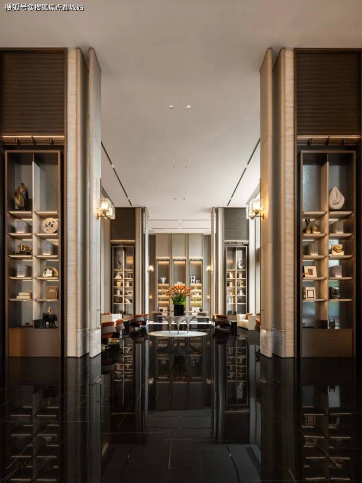 百年罗汉松 造价千万石材 约11米挑高大堂让想象力不再受限:大堂挑高约11米,仅石材用料价值千万,地面采用名贵进口石材劳伦黑金,成就身份与地位的彰显。顶部汲取德国世博馆设计灵感,通过材质分隔,演绎力量感与艺术气息。恢弘气势与毫厘细节,可按需定制全场景美学,