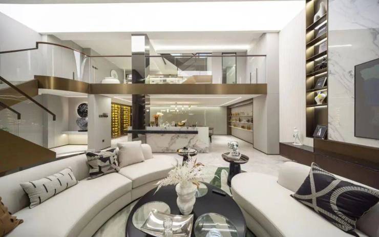 每层都是独立入户私密性很好,因为没有公摊得房率高赠送又多,300多方的主卧开间奢侈的达到了约6.6m,比市场上五六百方的都要大,客厅和家庭厅双厅概念非常创新。
