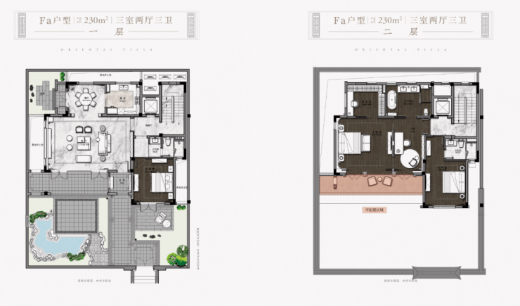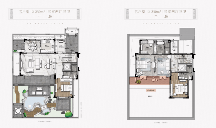 • 联合GOA大象设计公司(原绿城东方设计院的凌建先生的团队),通过降低建筑密度和容积率(容积率为0.614,建筑密度30%,以中式建筑中的江南民居形态创作出特有的两层合院产品)。