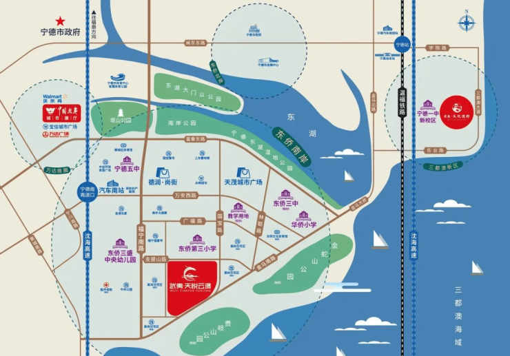 坐拥三横三纵路网,触控城市经纬,自由切换生活主场;临金马大桥、近宁德动车站、傍沈海高速口,通达八闽,架起国内快速通道。