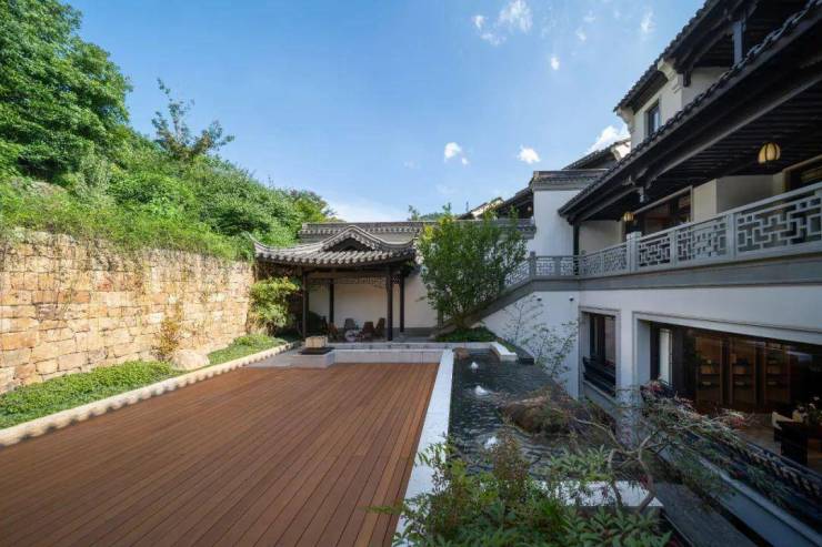 湖山天境最大的亮点便是其临湖而建的独特设计。推开窗,江南庭院的绝美风光毫无保留地映入眼帘,近处的院落、远处的山峦,泼墨一卷“虽为人作,宛自天开”的诗意江南,每一幕都是风情。
