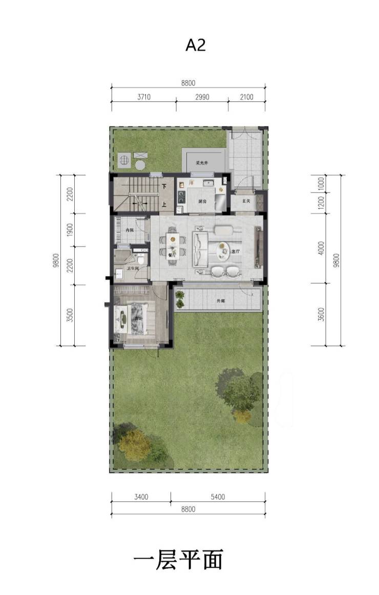 『私密内院』餐客厅连接内院,舒适轩朗,看庭外潇潇微雨,岁月从此静好。