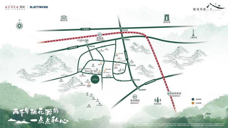 项目位于环杭一线圈层、环沪二级圈层内,距离杭州约70公里,上海约220公里;约半小时杭州都市圈,10分钟县城区,迅捷通达,借商合杭高铁通车及未来双河产业园规划之势(未来宁杭二通道开通,即将开启20分钟到杭城,距项目仅10分钟车程),辐射县城区及景区,到时必然人流荟萃。