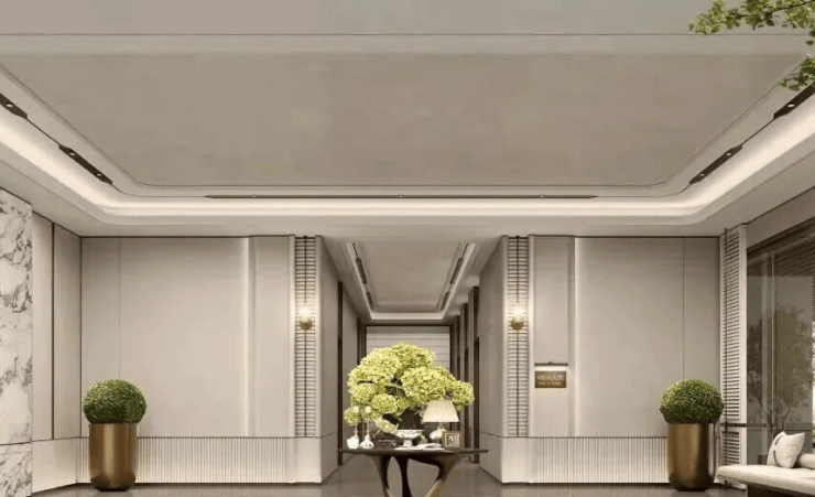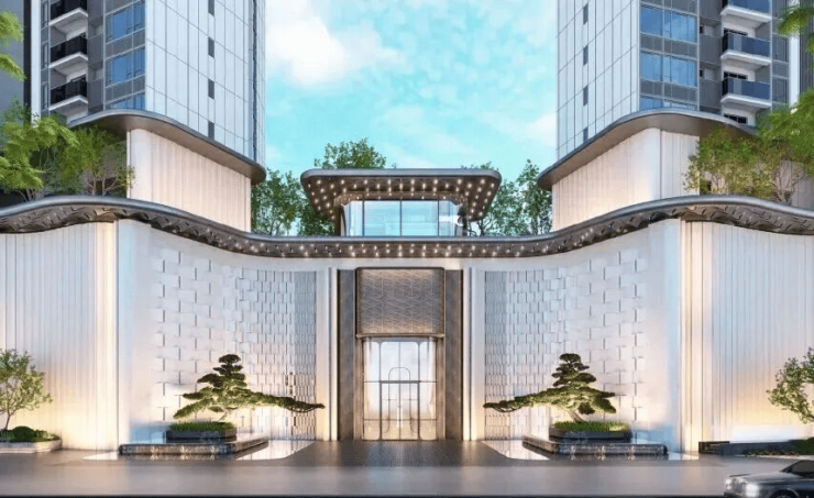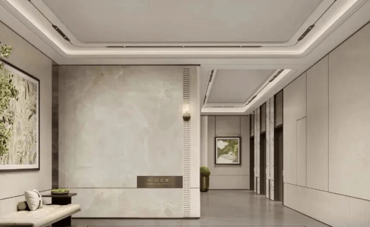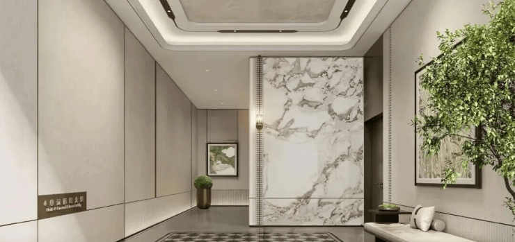 住宅以境系美学工艺,塔楼外立面采用铝板保温一体板、铝板、真石漆等材质,玻璃采用双层中空LOW-E玻璃,呈现简约、时尚的现代轻奢风格,对标深铁境系产品,追求臻品居住体验。