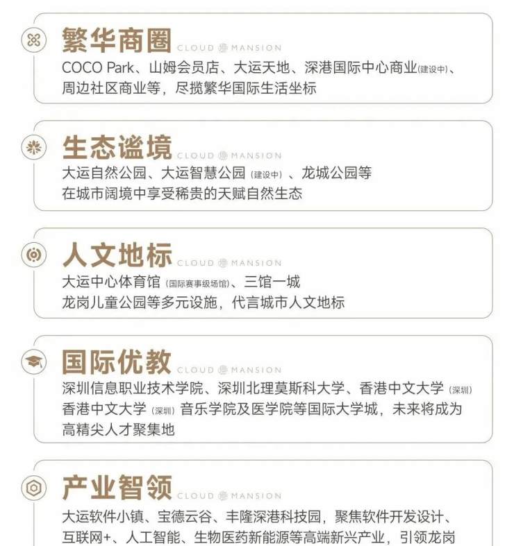 大运新城-深圳东部唯一“城市会客厅”,与前海中心、深圳湾超总、香蜜湖金融街等区域并列深圳六大城市会客厅,汇聚东部大型综合交通枢纽,标杆性文化体育场馆、产业精英商务群、国际大学城等优势,大运新城将成为深圳东部重要发展极点,推动深圳东部增长。