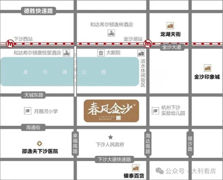 【项目位置】春风金沙项目位于钱塘新区金沙湖板块CBD中央商务区核心区域,地处繁华中心,交通便利,配套成熟,金沙湖公园旁,项目位于天城东路与海达南路交汇处。