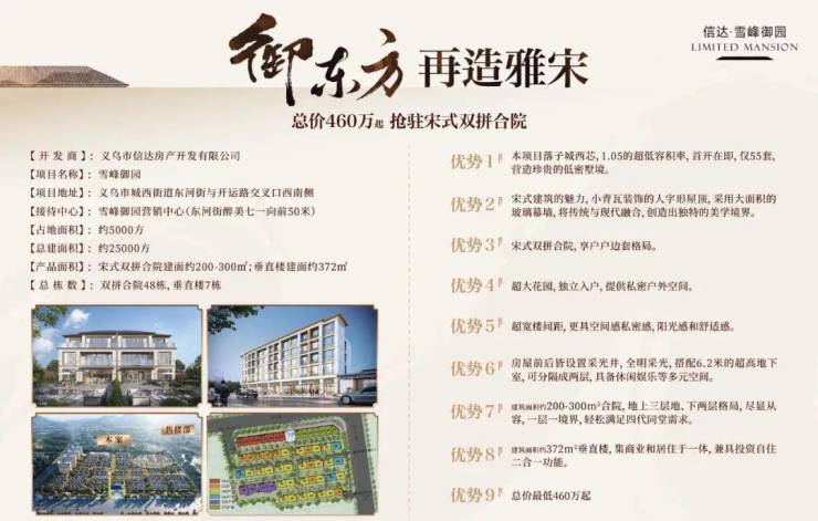 【产品面积】:宋式双拼合院建面约200/220 /245/268/300㎡;垂直楼建面约372㎡