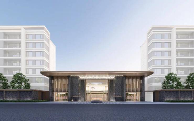 米白色石材、咖色真石漆搭配香槟色/银白色铝板,碰撞出鎏金质感与天然肌理,勾勒现代东方建筑轮廓,以封面姿态重塑主城天际线,彰显恒久雅奢风范。