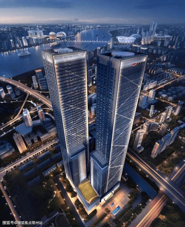 项目总占地1.5万方,总建筑面积21万方,由2栋240米高的AB双子塔和一栋100米高的C塔构成,A塔70层,B塔66层,C塔25层。