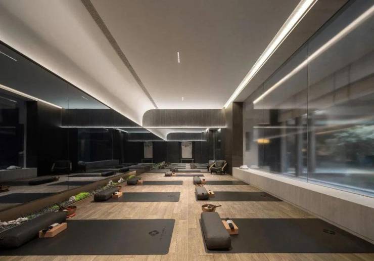 瑜伽室全景落地窗设计,将室外的美景引入健身房,让室内空间充分与户外园林交互,宋式园林美景尽收眼底,优雅舒展身姿,身心与自然交融,尽享放松与自由。